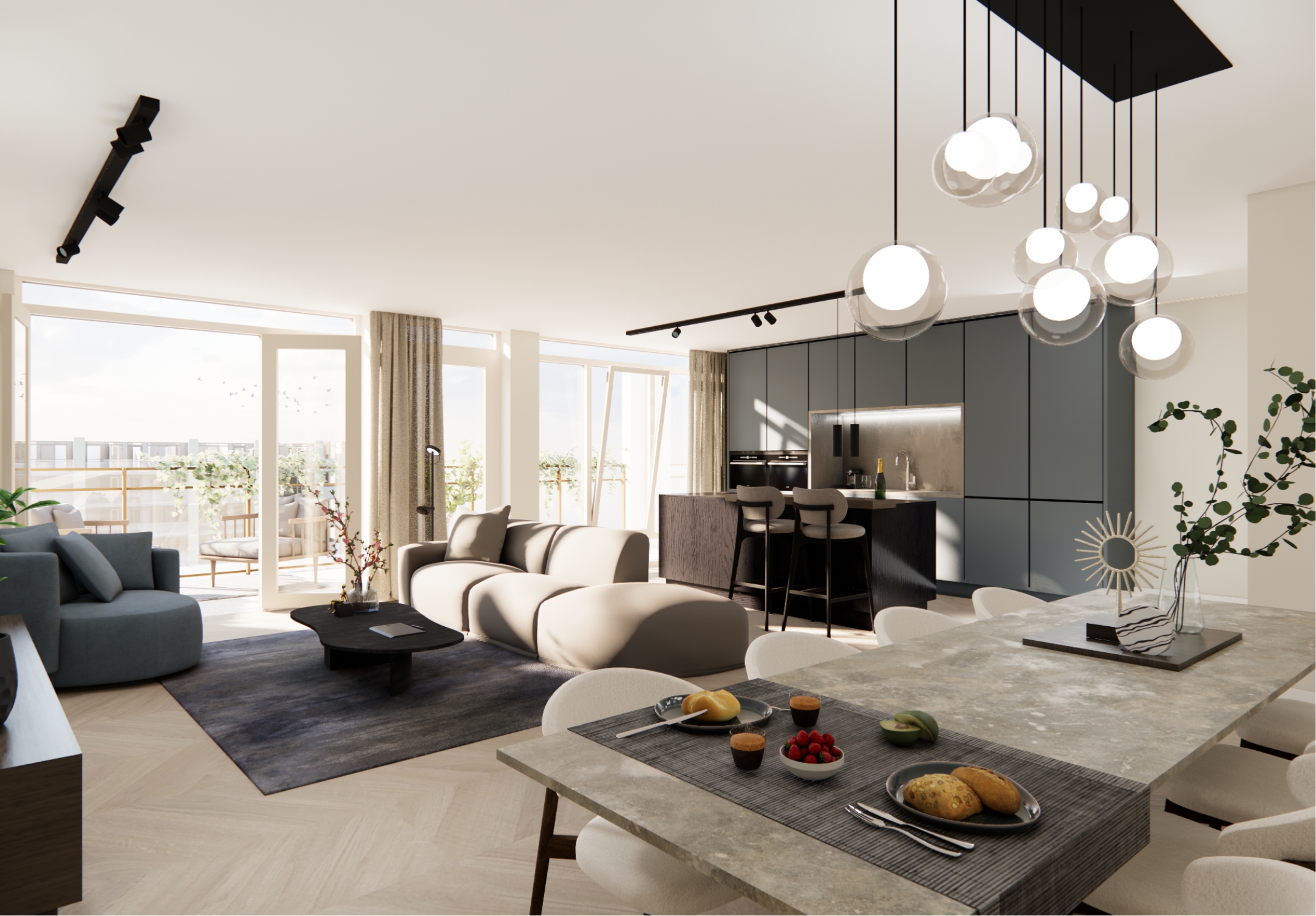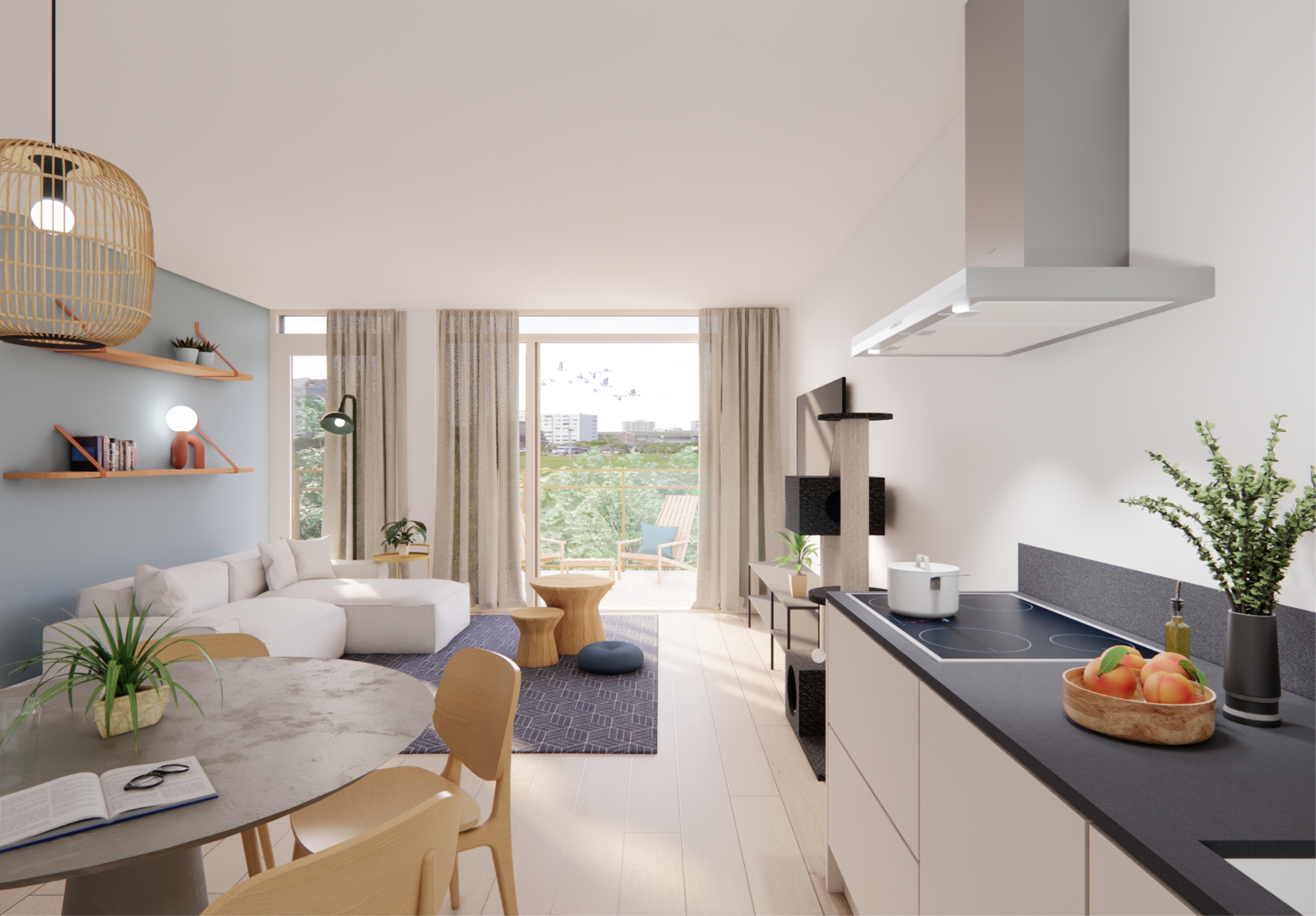 Je kiest uit 3- en 4-kamerappartementen met balkon, loggia of tuin. Sommige hebben zelfs twee buitenruimtes. De afwerking is compleet, met hoogwaardige keuken, sanitair en tegelwerk. En afhankelijk van de verdieping kijk je uit op de binnentuin of over de stad.